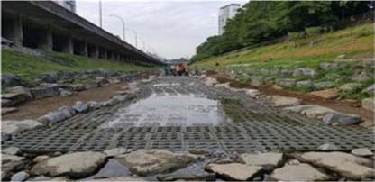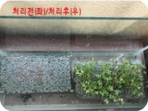인, 질소와 같은 영양물질을 수초가 제올라이트 블록 및 수중생물의 배설물로부터 흡수 뿌리가 성장(1차로 블록의 공극 및 홀에 뿌리를 활착한 후 뻗어 나간 일부가 자유롭게 2차 활착).